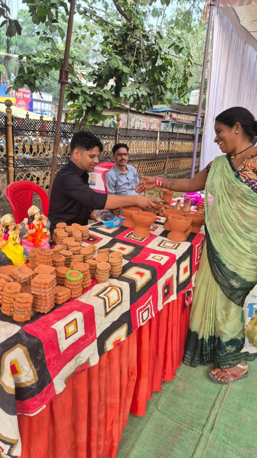 कलेक्टर श्री गोपाल वर्मा के मार्गदर्शन और मुख्य कार्यपालन अधिकारी जिला पंचायत श्री अजय कुमार त्रिपाठी के नेतृत्व में आयोजित इस कार्यक्रम में स्थानीय स्तर पर निर्मित विविध उत्पादों जैसे मिट्टी के दीये, मूर्तियां, बांस से बनी वस्तुएं, आचार, पापड़-बड़ी, हल्दी, मिर्च, धनिया, मसाले, नमकीन, कुकीज, ऑर्गेनिक गुड़, कोदो-कुटकी, ब्लैक राइस आदि का स्टॉल लगाया गया। दीपावली के अवसर पर लोगों ने रंग-बिरंगे दीये, मूर्तियां और खाद्य पदार्थों के गिफ्ट हैंपर को खूब पसंद किया। सभी वस्तुएं बहुत ही किफायती दरों पर उपलब्ध कराई गईं, जिससे नागरिकों ने उत्साहपूर्वक खरीदारी की।