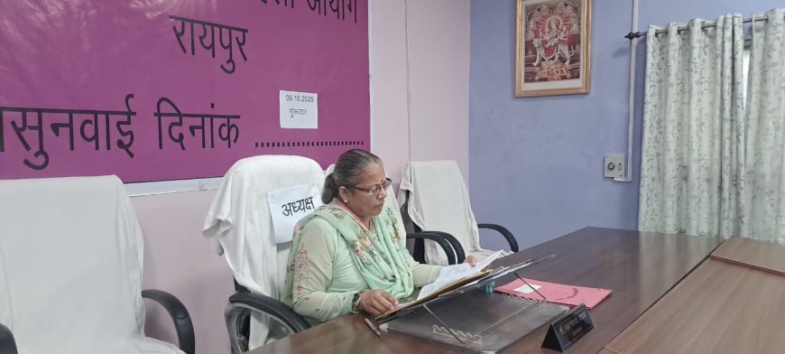 UNITED NEWS OF ASIA. हसीब अख्तर, रायपुर। छत्तीसगढ़ राज्य महिला आयोग की अध्यक्ष डॉ. किरणमयी नायक की अध्यक्षता में आज आयोग कार्यालय रायपुर में महिला उत्पीड़न से संबंधित मामलों की सुनवाई की गई। यह आयोग की 349वीं राज्य स्तरीय एवं 168वीं रायपुर जिला स्तरीय जनसुनवाई थी।