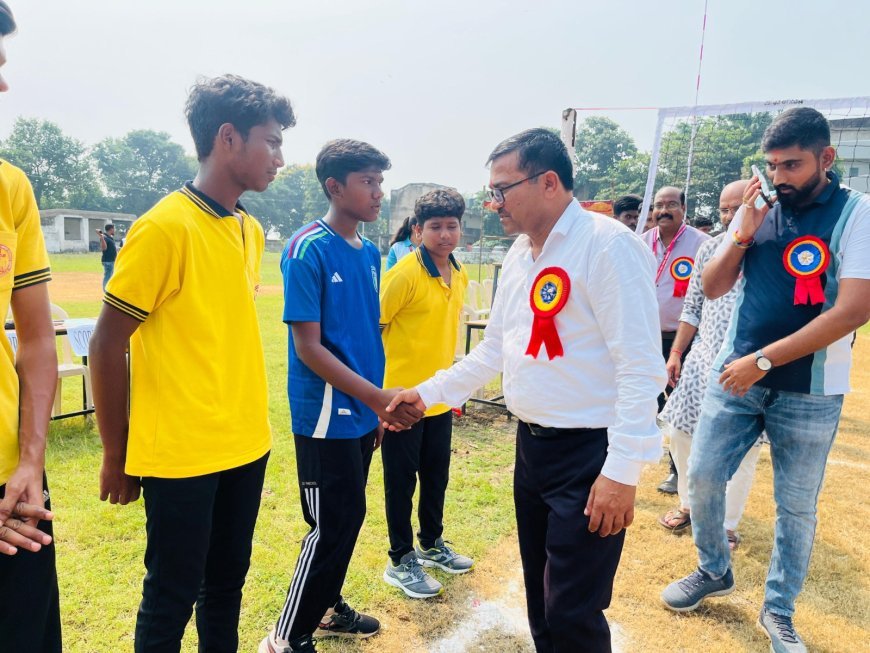 कार्यक्रम की शुरुआत माँ सरस्वती के तैलचित्र पर माल्यार्पण एवं दीप प्रज्वलन से हुई। अतिथियों का स्वागत पुष्पगुच्छ एवं स्मृति चिन्ह देकर किया गया। जिला शिक्षा अधिकारी श्री वर्मा ने विद्यार्थियों को संबोधित करते हुए कहा कि — “खेल न केवल शारीरिक स्फूर्ति देता है, बल्कि जीवन में अनुशासन, टीम भावना और नेतृत्व क्षमता भी विकसित करता है।”