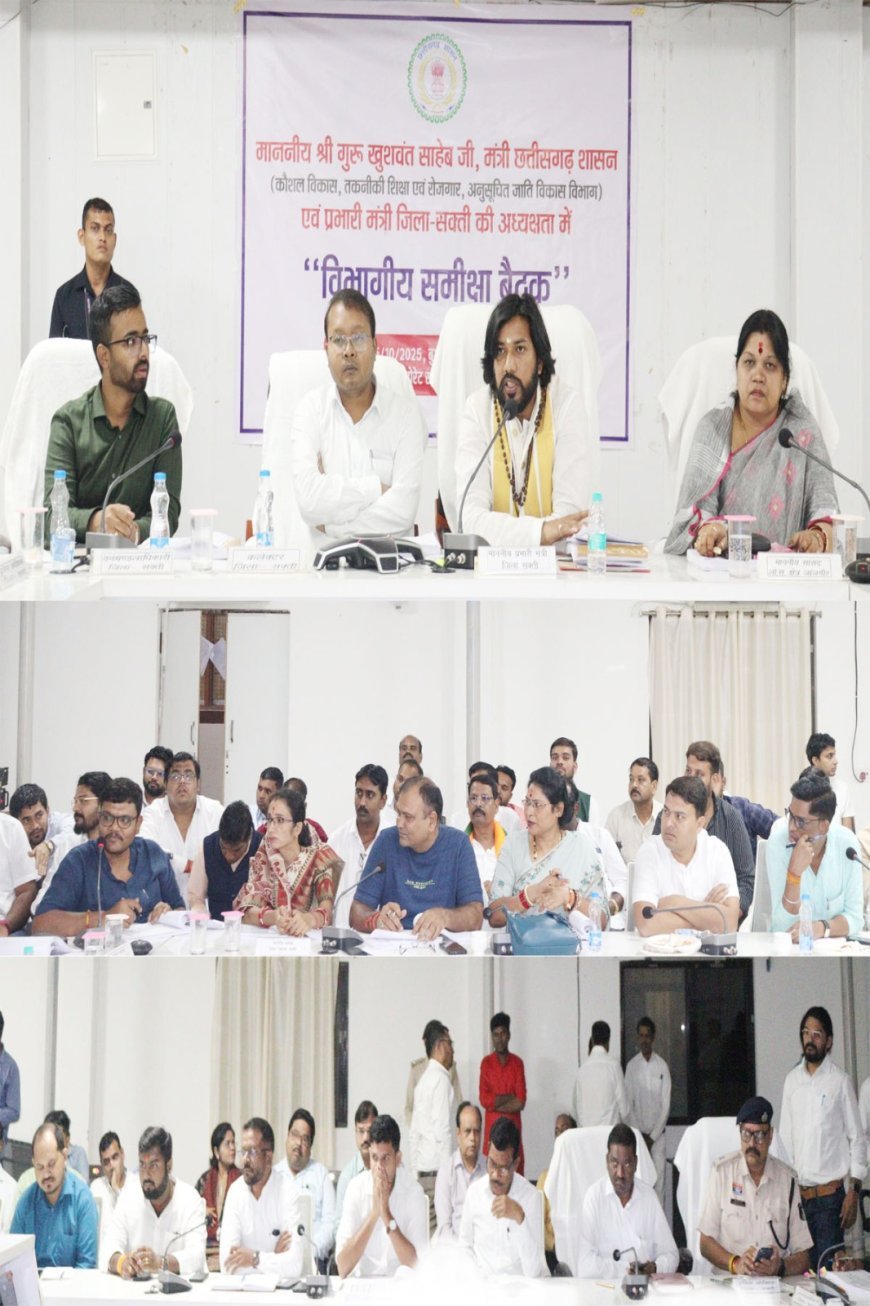 UNITED NEWS OF ASIA. अमृतेश्वर सिंह, सक्ती। सक्ती जिले में मंगलवार को प्रभारी मंत्री गुरु खुशवंत साहेब जी की अध्यक्षता में पहली समीक्षा बैठक आयोजित की गई, जिसके बाद प्रशासनिक स्तर पर बड़ा फेरबदल देखने को मिला। बैठक में विभागवार योजनाओं, राजस्व प्रकरणों, लोकसेवा गारंटी और विकास कार्यों की विस्तृत समीक्षा की गई।
