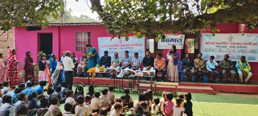 अखिल भारतीय अग्रवाल सम्मेलन रायगढ़ इकाई ने गर्म कपड़े वितरण पखवाड़ा चलाते हुए शहर और ग्रामीण क्षेत्रों के कई विद्यालयों में छात्रों को स्वेटर वितरित किए। आगाज़ संस्था के सहयोग से आयोजित इस कार्यक्रम का उद्देश्य ठंड से बचाव और आर्थिक रूप से कमजोर छात्रों को सहायता प्रदान करना था।
