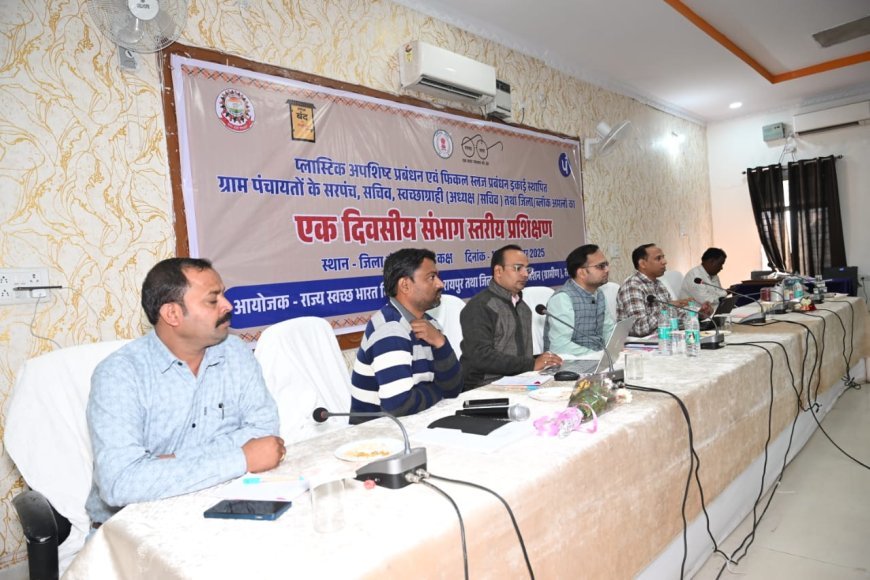 स्वच्छ भारत मिशन (ग्रामीण) के तहत अंबिकापुर में फीकल स्लज मैनेजमेंट (FSM) और प्लास्टिक अपशिष्ट प्रबंधन (PWM) पर एक दिवसीय संभाग स्तरीय प्रशिक्षण आयोजित किया गया। इसमें पंचायत प्रतिनिधियों और अधिकारियों को वैज्ञानिक व सुरक्षित प्रबंधन की जानकारी दी गई।