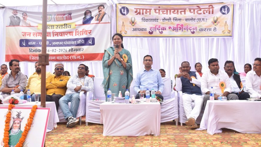 बालोद जिले के वनांचल ग्राम पटेली में आयोजित जिला स्तरीय जनसमस्या निवारण शिविर में बड़ी संख्या में ग्रामीणों की समस्याओं का मौके पर समाधान किया गया। शिविर में कलेक्टर सहित वरिष्ठ अधिकारियों ने स्वच्छता एवं बाल विवाह रोकथाम की शपथ दिलाई और विभिन्न योजनाओं के अंतर्गत हितग्राहियों को लाभ वितरित किए।
