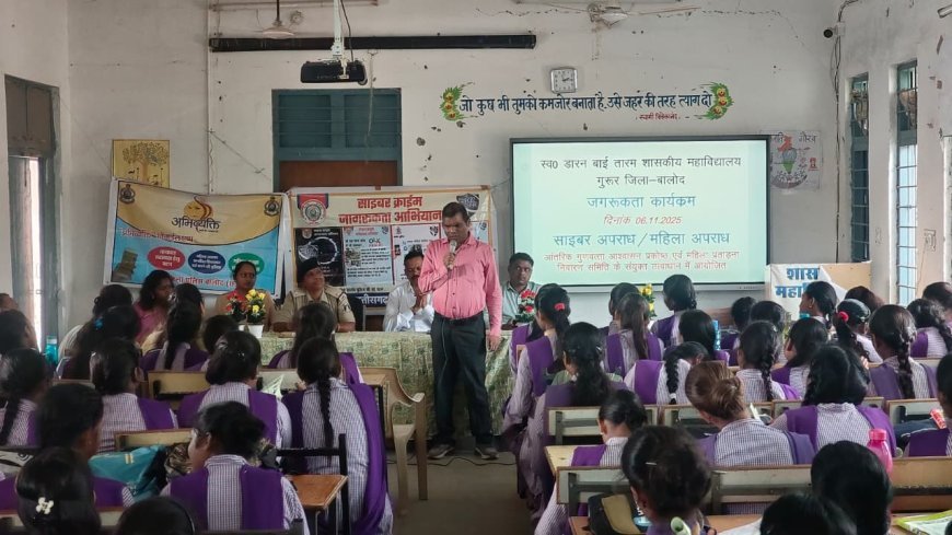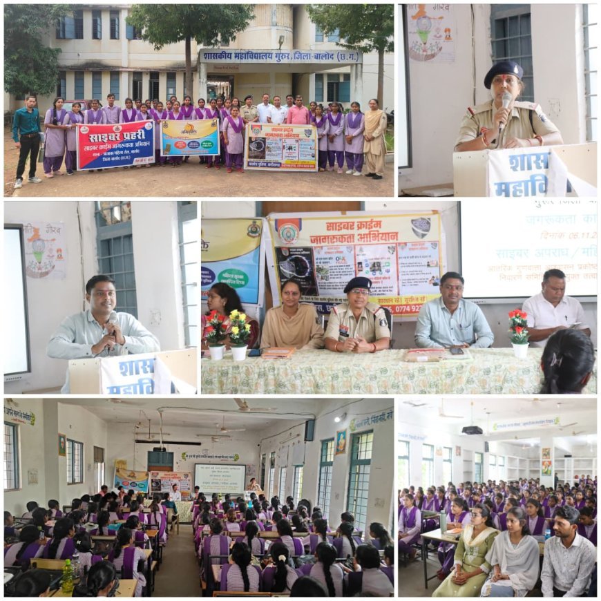 बालोद पुलिस ने जिलेभर में साइबर सुरक्षा, महिला सम्मान, नशामुक्ति और यातायात नियमों पर जनजागरूकता अभियान चलाया। डीएसपी बोनिफेस एक्का के नेतृत्व में डॉरन बाई तारम शासकीय महाविद्यालय गुरूर में छात्रों को ऑनलाइन ठगी से बचाव, महिला कानूनों और सामाजिक जिम्मेदारी की जानकारी दी गई।