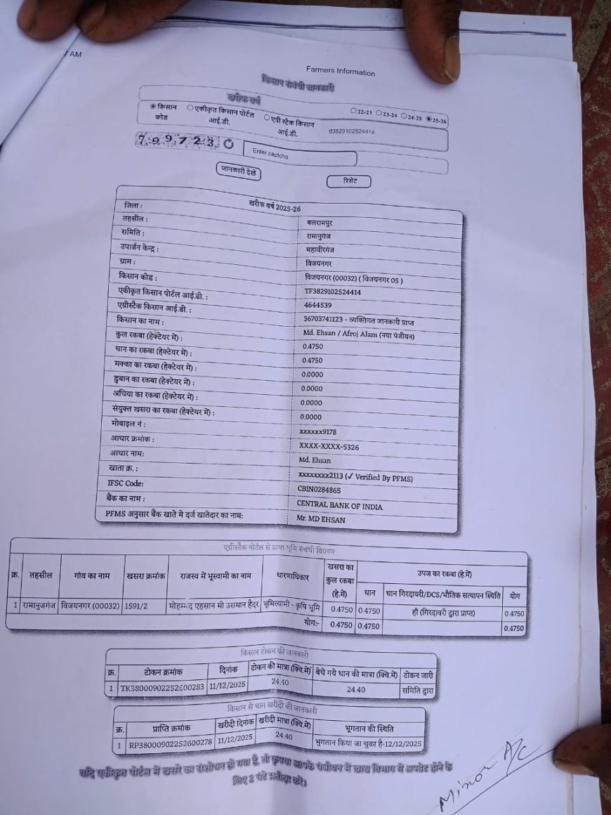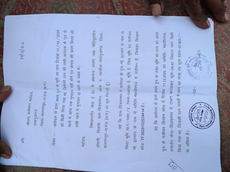 बलरामपुर में एक किसान अपनी ही फसल का भुगतान पाने के लिए महीनों से सरकारी दफ्तरों के चक्कर काट रहा है। विभागों के बीच तालमेल की कमी से किसान परेशान है और सिस्टम पर सवाल खड़े हो रहे हैं।