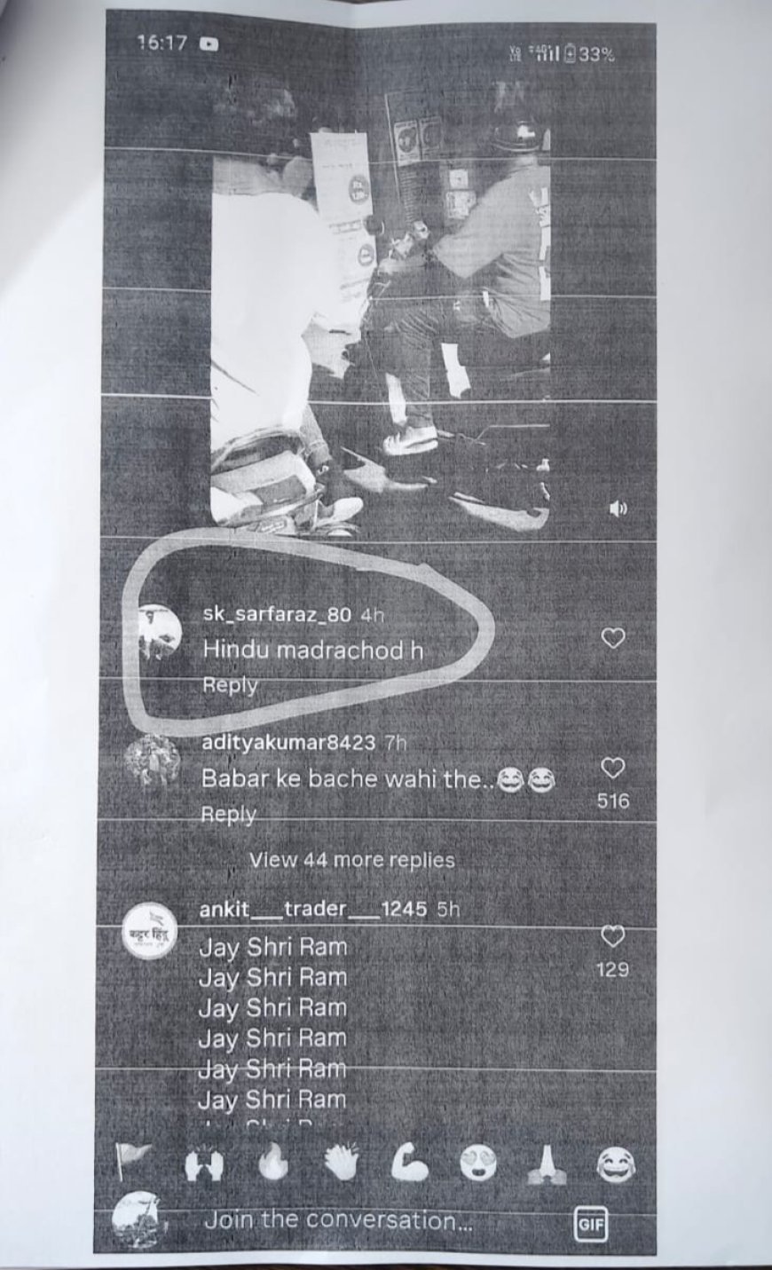 UNITED NEWS OF ASIA. अली खान, बलरामपुर। जिले के कुसमी थाना क्षेत्र में सोशल मीडिया पर की गई एक आपत्तिजनक पोस्ट के कारण क्षेत्र में तनाव का माहौल बन गया। बताया जा रहा है कि इंस्टाग्राम पर ‘SK_sarfraz_80’ नाम की आईडी से हिंदू समाज के खिलाफ अभद्र टिप्पणी और गाली-गलौज की गई थी, जिसके बाद स्थानीय लोगों में भारी आक्रोश फैल गया।