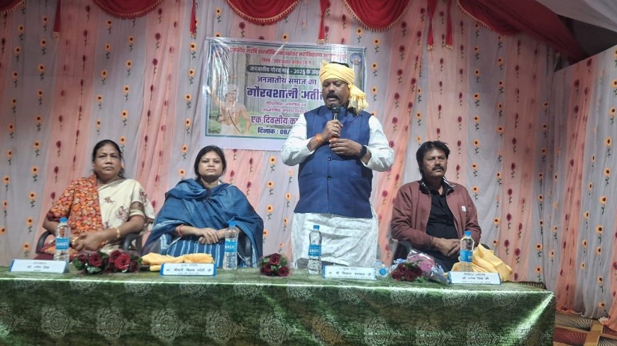 विशिष्ट अतिथि रत्नेश सिंह ने जनजातीय समाज की सामुदायिक जीवनशैली, साहस और संस्कृति को भारतीय समाज की अमूल्य धरोहर बताया। कार्यक्रम की अध्यक्षता करते हुए प्राचार्य डॉ. रश्मि सिंह ने कहा कि जनजातीय इतिहास का संरक्षण और प्रसार शिक्षण संस्थानों की अहम जिम्मेदारी है।