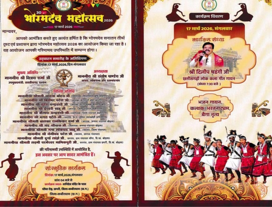 हर वर्ष की तरह इस बार भी भोरमदेव महोत्सव क्षेत्र के लोगों के लिए सांस्कृतिक उत्सव का रूप लेकर सामने आएगा, जहां लोकगीत, नृत्य और भक्ति संगीत की प्रस्तुतियां दर्शकों को मंत्रमुग्ध कर देंगी।