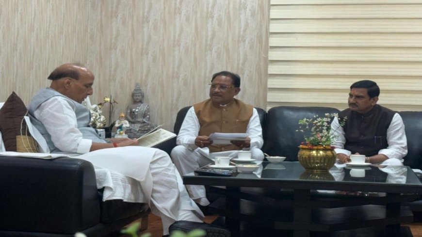 UNITED NEWS OF ASIA. बिलासपुर। छत्तीसगढ़ के मुख्यमंत्री विष्णुदेव साय ने आज नई दिल्ली में केंद्रीय रक्षा मंत्री राजनाथ सिंह से मुलाकात कर बिलासा देवी केंवट एयरपोर्ट, चकरभाठा (बिलासपुर) के विस्तारीकरण से संबंधित विषयों पर विस्तृत चर्चा की। इस अहम बैठक में केंद्रीय आवासन एवं शहरी कार्य राज्य मंत्री तथा बिलासपुर सांसद तोखन साहू भी उपस्थित रहे।