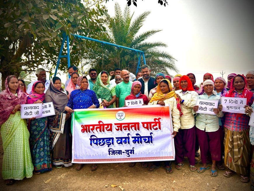 UNITED NEWS OF ASIA.भुवाल रोहिताश, दुर्ग। ग्रामीण भारत के विकास को नई दिशा देने वाले विकसित भारत जी राम जी अधिनियम को लेकर भारतीय जनता पार्टी पिछड़ा वर्ग मोर्चा द्वारा दुर्ग ग्रामीण विधानसभा क्षेत्र के अंतर्गत उतई मंडल के ग्राम हनोदा एवं खमहरिया में जनचौपाल का आयोजन किया गया। यह कार्यक्रम भाजपा पिछड़ा वर्ग मोर्चा के प्रदेश नेतृत्व के निर्देशानुसार आयोजित किया गया, जिसमें भाजपा जिला अध्यक्ष सुरेंद्र कौशिक मुख्य अतिथि के रूप में उपस्थित रहे। कार्यक्रम का नेतृत्व पिछड़ा वर्ग मोर्चा के जिला अध्यक्ष तेखन सिन्हा ने किया।
