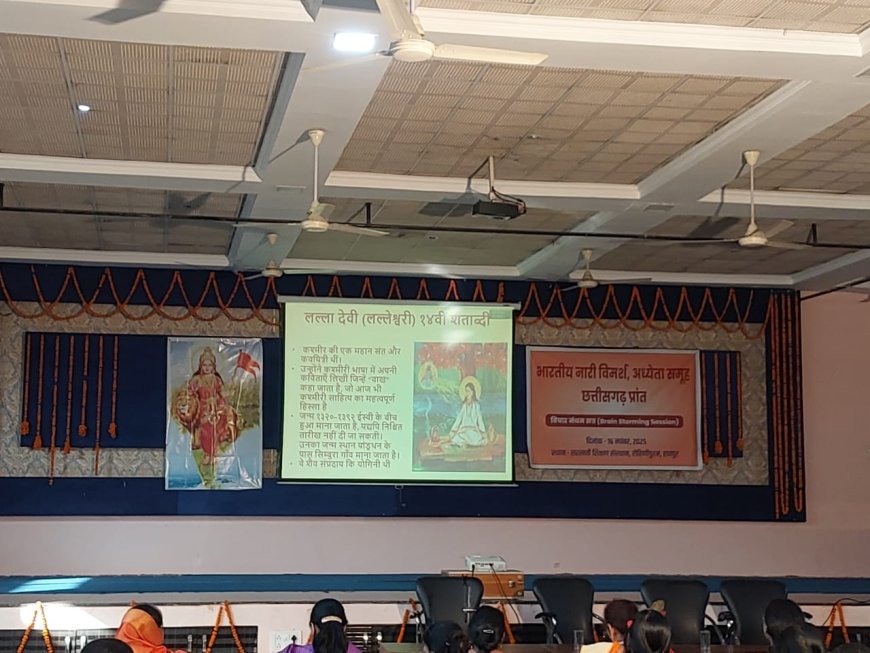UNITED NEWS OF ASIA. अमृतेश्वर सिंह, रायपुर । छत्तीसगढ़ प्रांत के भारतीय नारी विमर्श अध्येता समूह का ब्रेन स्ट्रॉमिंग सत्र रविवार को सरस्वती शिक्षण संस्थान, रोहिणीपुरम में सम्पन्न हुआ। सत्र का मुख्य विषय भारतीय नारी आदर्श, उनके अधिकार और कर्तव्य, तथा समाज में उनके योगदान पर केंद्रित रहा।