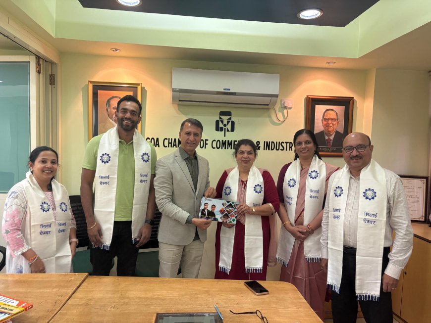 UNITED NEWS OF ASIA. भारती दुर्ग, भिलाई। छत्तीसगढ़ और गोवा के बीच व्यापारिक संबंधों को नई ऊंचाई देने वाला ऐतिहासिक MoU हस्ताक्षरित हुआ है। छत्तीसगढ़ चैंबर ऑफ कॉमर्स एंड इंडस्ट्रीज (CCCI) और गोवा चैंबर ऑफ कॉमर्स एंड इंडस्ट्री के बीच यह समझौता दोनों राज्यों के उद्योग और व्यापार क्षेत्र में नया अध्याय खोलने वाला है।