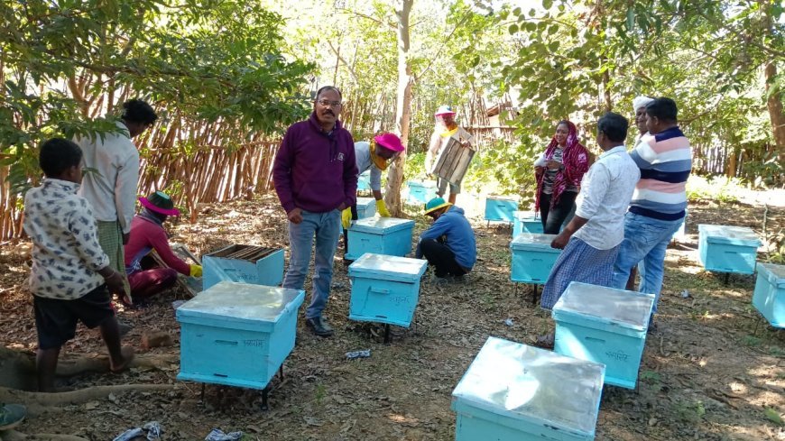 डीएमएफ मद से आजीविका संवर्धन की पहल: बोड़ला के थुहापानी में कृत्रिम मधुमक्खी पालन प्रशिक्षण सम्पन्न