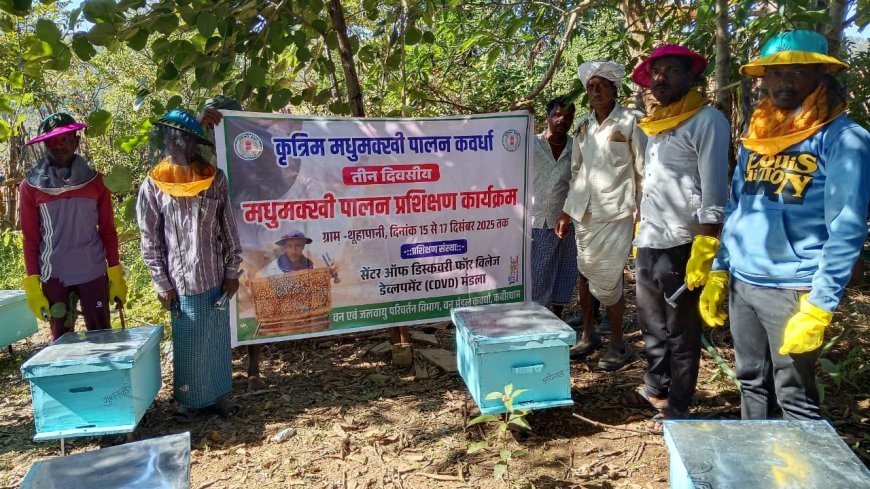 यह प्रशिक्षण कार्यक्रम वनमंडलाधिकारी कवर्धा के निर्देशन, उपवनमंडलाधिकारी कवर्धा के मार्गदर्शन एवं वन परिक्षेत्र अधिकारी कवर्धा के नेतृत्व में दिनांक 15 दिसंबर 2025 से 18 दिसंबर 2025 तक सफलतापूर्वक संपन्न हुआ। कार्यक्रम में एन.जी.ओ. ग्राम विकास खोज केन्द्र (सी.डी.व्ही.डी.), मंडला द्वारा चयनित हितग्राहियों को मधुमक्खी पालन की उन्नत एवं वैज्ञानिक तकनीकों की विस्तृत जानकारी दी गई।