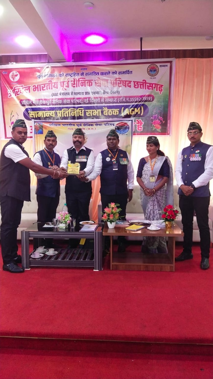 इस अवसर पर प्रांत अध्यक्ष कर्नल हरेंद्र त्रिपाठी, प्रांतीय महासचिव नायक किशोरी लाल साहू, प्रांतीय उपाध्यक्ष हवलदार खेमचंद निषाद, प्रांतीय मातृ शक्ति अध्यक्ष श्रीमती श्यामा साहू, प्रांतीय मीडिया प्रभारी देवेंद्र दड़सेना, जिला अध्यक्ष नंद किशोर साहू एवं सह सचिव कोमल कुमार साहू उपस्थित रहे।