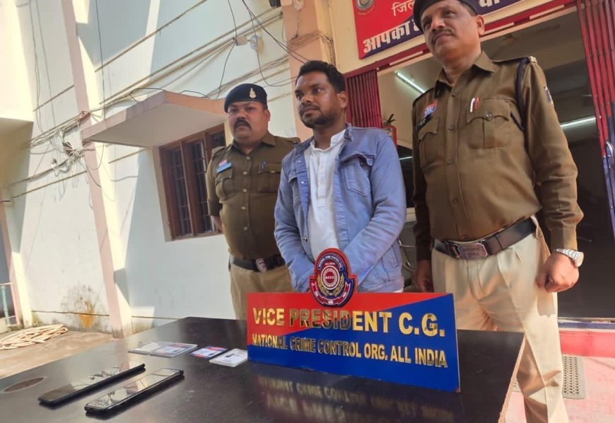 पुलिस जांच के दौरान वाहन के डैशबोर्ड पर National Crime Control Org. का लोगो और पदनाम दर्शाने वाला बोर्ड लगा पाया गया। मौके पर मौजूद वाहन चालक से पूछताछ करने पर उसने अपना नाम टिकेश्वर नरेटी, पिता सगराम नरेटी, उम्र 28 वर्ष बताया। उसने स्वयं को ग्राम डांगरा, थाना दुर्गकोंदल, जिला उत्तर बस्तर कांकेर का निवासी बताया।