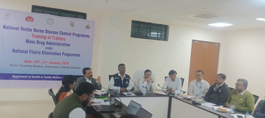 एमडीए अभियान की प्रभावी तैयारी के लिए 20 जनवरी 2026 को स्वास्थ्य भवन, अटल नगर, रायपुर में दो दिवसीय राज्य स्तरीय प्रशिक्षण कार्यशाला का आयोजन किया गया। इस कार्यशाला में 7 जिलों के जिला मलेरिया अधिकारी, खंड चिकित्सा अधिकारी, वीबीडी सलाहकार एवं टेक्निकल सुपरवाइजरों ने भाग लिया। भारत सरकार के संयुक्त निदेशक, एनसीवीबीडीसी, डॉ. रिंकू शर्मा ने वर्चुअल माध्यम से प्रशिक्षण सत्र को संबोधित करते हुए तकनीकी और नीतिगत मार्गदर्शन प्रदान किया।