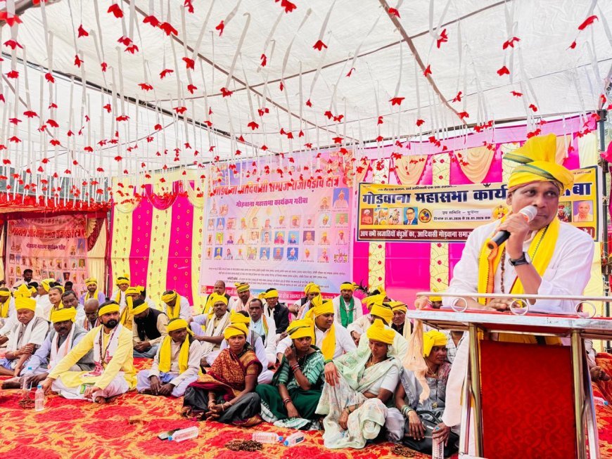 UNITED NEWS OF ASIA.रुपेश साहू, मैनपुर (गरियाबंद)। गरियाबंद जिले के विकासखंड मैनपुर अंतर्गत सुदूर वनांचल ग्राम पंचायत कोचेंगा के आश्रित गांव गरीबा में सर्व आदिवासी समाज राजापड़ाव क्षेत्र द्वारा दो दिवसीय गोंडवाना महासम्मेलन का भव्य आयोजन किया गया। इस ऐतिहासिक आयोजन में उड़ीसा, बस्तर, सांकरा नगरी, मैनपुर, गरियाबंद एवं देवभोग क्षेत्र से हजारों की संख्या में आदिवासी समाज के लोग शामिल हुए। वर्षों बाद राजापड़ाव क्षेत्र में हुए इस महासम्मेलन ने सामाजिक चेतना और एकता का नया संदेश दिया।