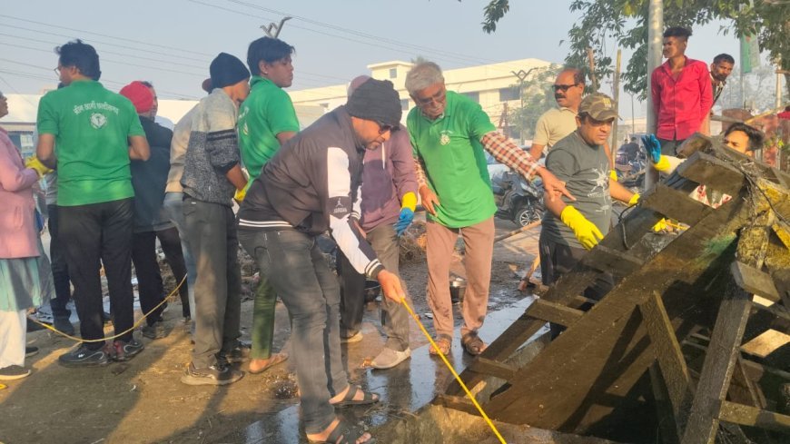 महाराजबंध तालाब में तीसरे दिन भी ग्रीन आर्मी का स्वच्छता अभियान जारी, 25 से अधिक दुर्गा-गणेश झांकियों के अवशेष हटाए गए