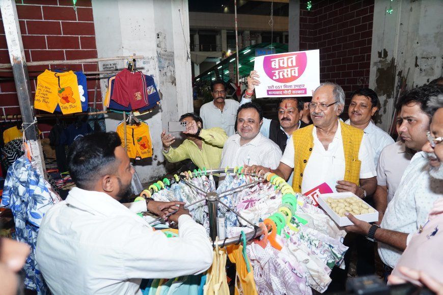 UNITED NEWS OF ASIA. अमृतेश्वर सिंह, रायपुर। शारदीय नवरात्रि के प्रथम दिन से लागू हुए GST 2.0 का स्वागत करते हुए रायपुर सांसद एवं वरिष्ठ भाजपा नेता बृजमोहन अग्रवाल ने आज बजट उत्सव मनाया। इस अवसर पर उन्होंने मालवीय रोड मार्केट का भ्रमण कर जनता और व्यापारियों से भेंट की और मिठाई खिलाकर इस ऐतिहासिक कर सुधार की खुशी साझा की।