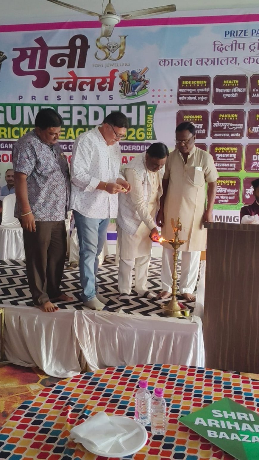 कार्यक्रम का शुभारंभ मुख्य अतिथियों द्वारा दीप प्रज्वलन कर किया गया। इस अवसर पर प्रमोद जैन (अध्यक्ष, नगर पंचायत गुंडरदेही), अश्वनी यादव (वरिष्ठ भाजपा नेता) एवं सुरेश बाफना (प्रतिष्ठित व्यवसायी) मुख्य अतिथि के रूप में उपस्थित रहे। अतिथियों ने आयोजन समिति के प्रयासों की सराहना करते हुए कहा कि ऐसे आयोजनों से स्थानीय प्रतिभाओं को मंच मिलता है और खेल संस्कृति को बढ़ावा मिलता है।