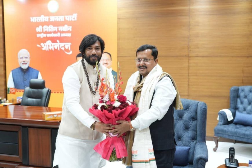 UNITED NEWS OF ASIA. अमृतेश्वर सिंह,रायपुर | आरंग/रायपुर/नई दिल्ली। छत्तीसगढ़ शासन के कैबिनेट मंत्री (कौशल विकास, तकनीकी शिक्षा एवं रोजगार तथा अनुसूचित जाति विभाग) एवं आरंग विधायक गुरु खुशवंत साहेब जी ने भाजपा राष्ट्रीय कार्यालय, नई दिल्ली में छत्तीसगढ़ प्रदेश प्रभारी एवं नवनियुक्त राष्ट्रीय कार्यकारी अध्यक्ष नितिन नवीन जी से शिष्टाचार भेंट की। इस अवसर पर मंत्री गुरु खुशवंत साहेब जी ने राष्ट्रीय कार्यकारी अध्यक्ष का दायित्व संभालने पर नितिन नवीन जी को हार्दिक बधाई एवं शुभकामनाएं दीं।
