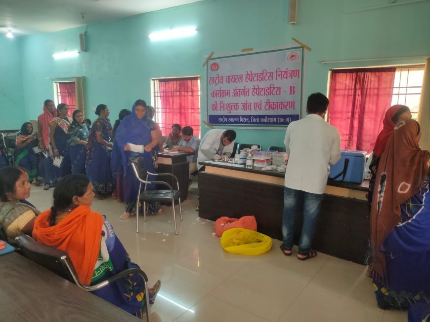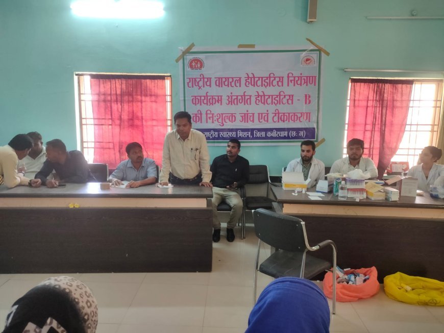 कबीरधाम में राष्ट्रीय वायरल हेपेटाइटिस नियंत्रण कार्यक्रम के तहत आयोजित स्वास्थ्य शिविर में कर्मचारियों और नागरिकों की जांच, परामर्श और टीकाकरण किया गया। जागरूकता फैलाने पर जोर।