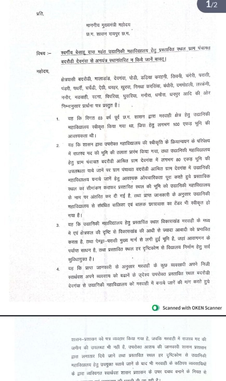 ग्रामीणों के अनुसार, लगभग तीन वर्ष पहले छत्तीसगढ़ शासन ने मरवाही क्षेत्र में उद्यानिकी महाविद्यालय खोलने की स्वीकृति दी थी। इस परियोजना के लिए करीब 100 एकड़ भूमि की आवश्यकता तय की गई थी। इसके बाद राजस्व विभाग द्वारा ग्राम पंचायत बदरौडी के आश्रित ग्राम देवगवां में लगभग 80 एकड़ उपयुक्त भूमि का चयन किया गया। ग्रामीणों का कहना है कि यह स्थल सभी आवश्यक मानकों पर खरा उतरता है और महाविद्यालय स्थापना के लिए आदर्श स्थान है।