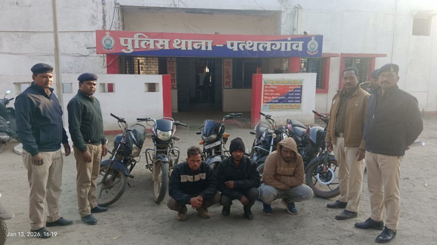 पत्थलगांव पुलिस की बड़ी कार्रवाई: मोटरसाइकिल चोर गिरोह के 3 सदस्य गिरफ्तार, 5 चोरी की बाइक जब्त