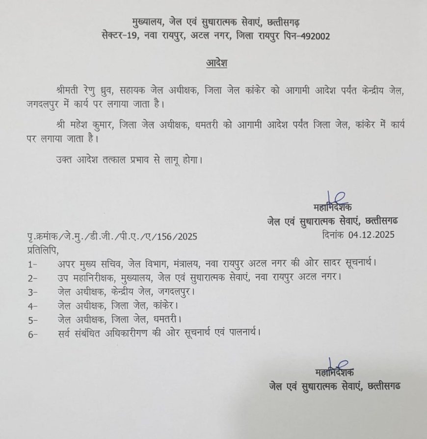 UNITEDE NEWS OF ASIA. रायपुर सेंट्रल जेल में बंद सर्व आदिवासी समाज के पूर्व जिला अध्यक्ष और कांग्रेस नेता जीवन ठाकुर की संदिग्ध मौत के बाद कांकेर जिले में तनाव की स्थिति बन गई है और बढ़ते विरोध के बीच जिला प्रशासन ने बड़ा कदम उठाते हुए कांकेर जिला जेल की जेलर को तत्काल प्रभाव से हटा दिया है |