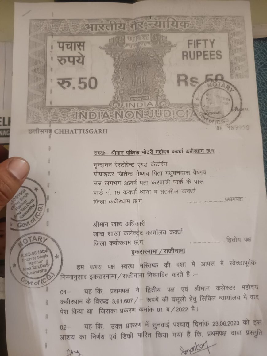 UNITED NEWS OF ASIA. सौरभ नामदेव, कवर्धा l छत्तीसगढ़ के कवर्धा से एक महत्वपूर्ण प्रशासनिक और कानूनी मामला सामने आया है, जहां खाद्य विभाग की लापरवाही के चलते न्यायालय को सख्त कदम उठाना पड़ा। न्यायालय के आदेश के तहत खाद्य विभाग कार्यालय के सामानों की कुर्की की कार्रवाई की जा रही है। यह मामला विभाग द्वारा एक रेस्टोरेंट संचालक को समय पर भुगतान न करने से जुड़ा है।