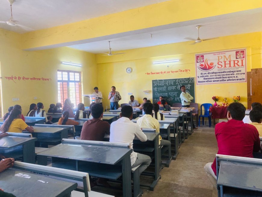 सागर जिले के केसली स्थित PM श्री विद्यालय घाना में प्रवेश उत्सव का आयोजन किया गया। कार्यक्रम में SDM राजनंदनी शर्मा ने बच्चों का स्वागत कर उन्हें प्रोत्साहित किया और शिक्षा के प्रति जागरूक किया।