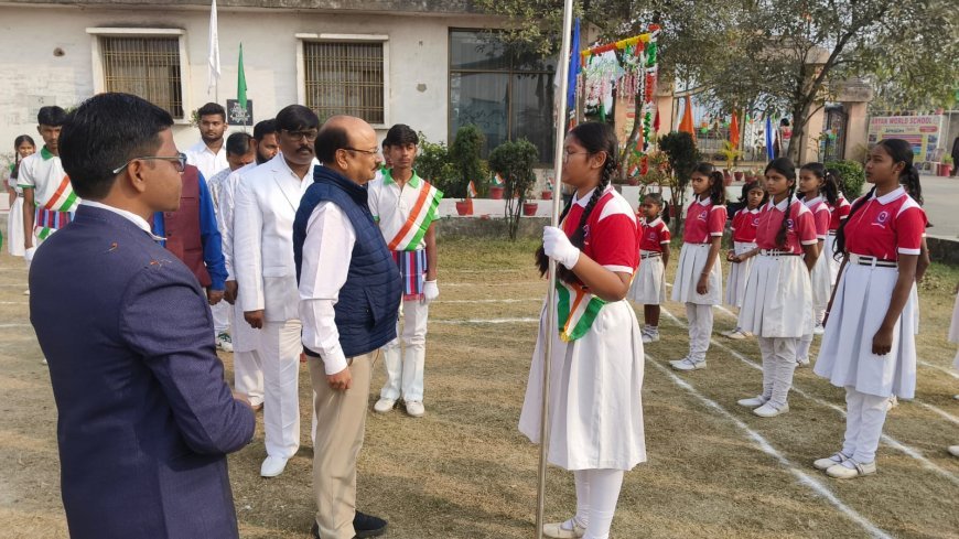 कार्यक्रम का मंच संचालन छात्र नैतिक एवं आशीष ने प्रभावशाली ढंग से किया। मुख्य अतिथि डॉ. राजू अग्रवाल ने अपने प्रेरणादायक संबोधन में विद्यार्थियों को देशभक्ति, अनुशासन एवं नागरिक कर्तव्यों के प्रति सजग रहने का संदेश दिया। वहीं एस. एन. श्रीवास्तव ने गणतंत्र दिवस के महत्व पर प्रकाश डालते हुए शिक्षकों और विद्यार्थियों को प्रेरित किया।