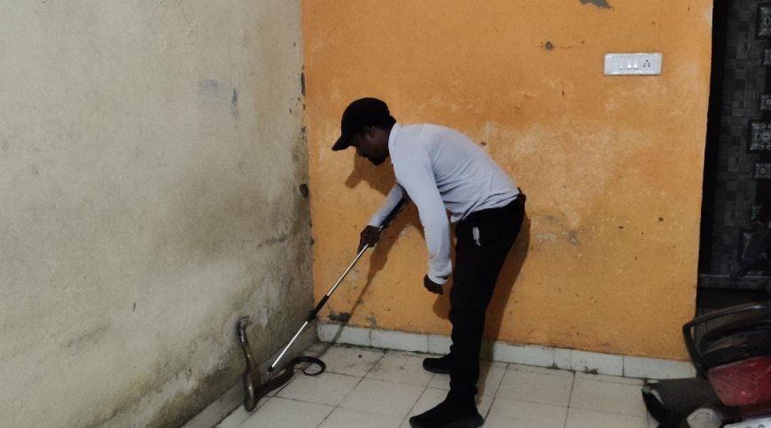 इसके बाद सूचना तुरंत वाइल्डलाइफ रेस्क्यू टीम प्रमुख जितेंद्र सारथी को दी गई। टीम मौके पर पहुंची और घर का ताला तोड़ा गया। अंदर प्रवेश करने पर नाग फन फैलाए बैठा मिला जिसे देखकर लोगों के हाथ-पैर फूल गए।