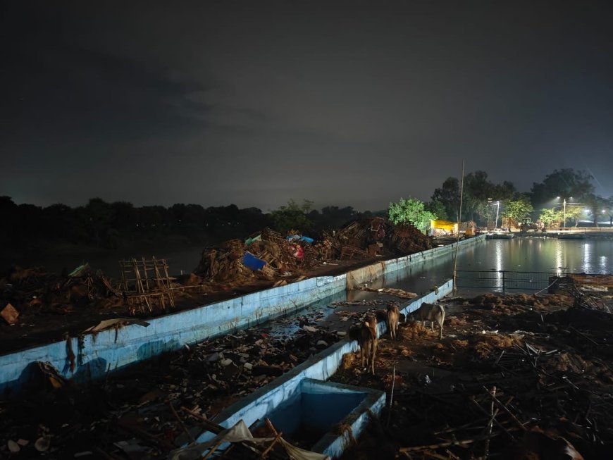 UNITED NEWS OF ASIA. हसीब अख्तर, रायपुर। दुर्गोत्सव के समापन के बाद नगर निगम रायपुर ने स्वच्छता की दिशा में एक महत्वपूर्ण कदम उठाते हुए महादेवघाट स्थित विसर्जन कुण्ड की रात्रिकालीन विशेष सफाई शुरू की है। महापौर मीनल चौबे और आयुक्त विश्वदीप के निर्देश पर नगर निगम जोन 8 की टीम द्वारा संत रविदास वार्ड क्रमांक 70 अंतर्गत इस अभियान को अंजाम दिया जा रहा है।