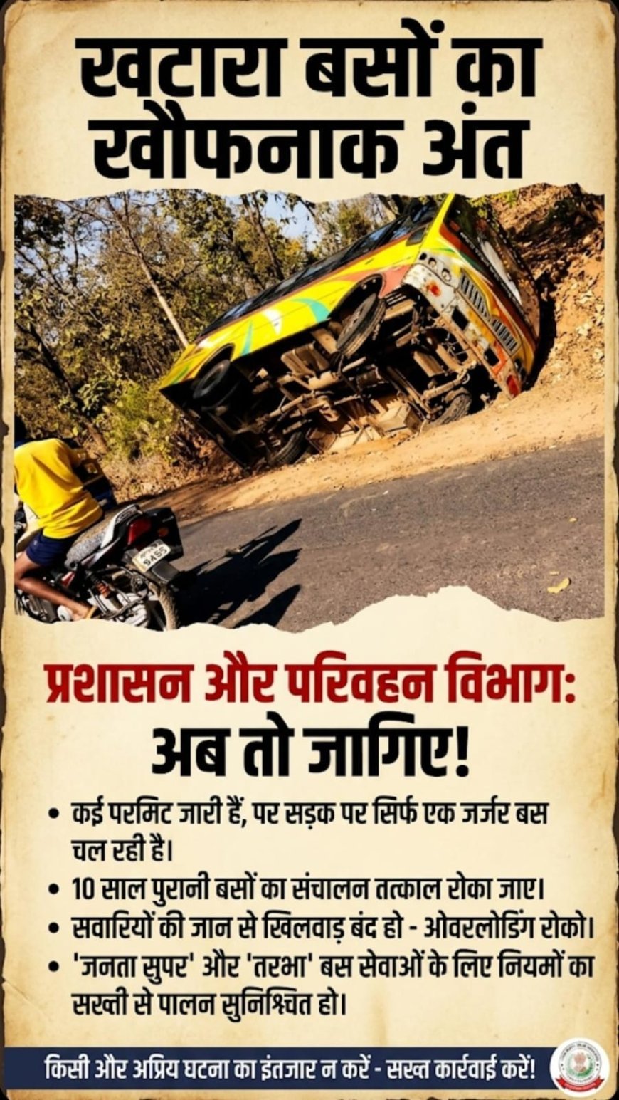 नागरिकों ने प्रशासन से कई सवाल उठाए हैं। क्या इन बसों की नियमित फिटनेस जांच की जा रही है? कई परमिट होने के बावजूद एक ही बस क्यों चलाई जा रही है? ओवरलोडिंग और जर्जर बसों के खिलाफ कार्रवाई क्यों नहीं हो रही?
