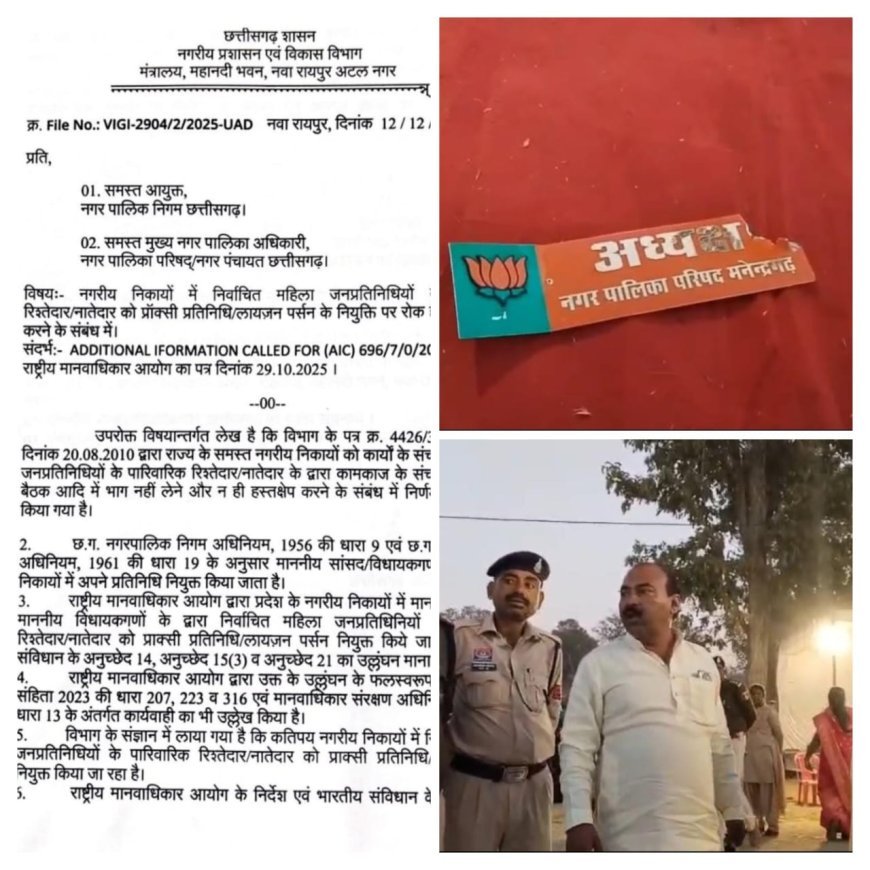 यह पूरा मामला सीधे तौर पर ‘प्रॉक्सी कल्चर’ से जुड़ता है, जिसे समाप्त करने के लिए छत्तीसगढ़ नगरीय प्रशासन विभाग द्वारा पहले ही स्पष्ट दिशा-निर्देश जारी किए जा चुके हैं। विभाग के अनुसार, महिला निर्वाचित प्रतिनिधियों के कामकाज में पतियों या परिजनों का हस्तक्षेप संवैधानिक मूल्यों और समानता के अधिकार के विपरीत है।