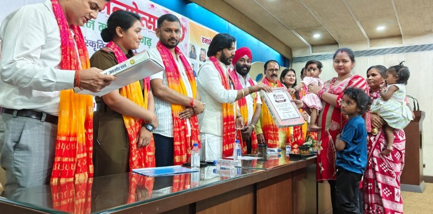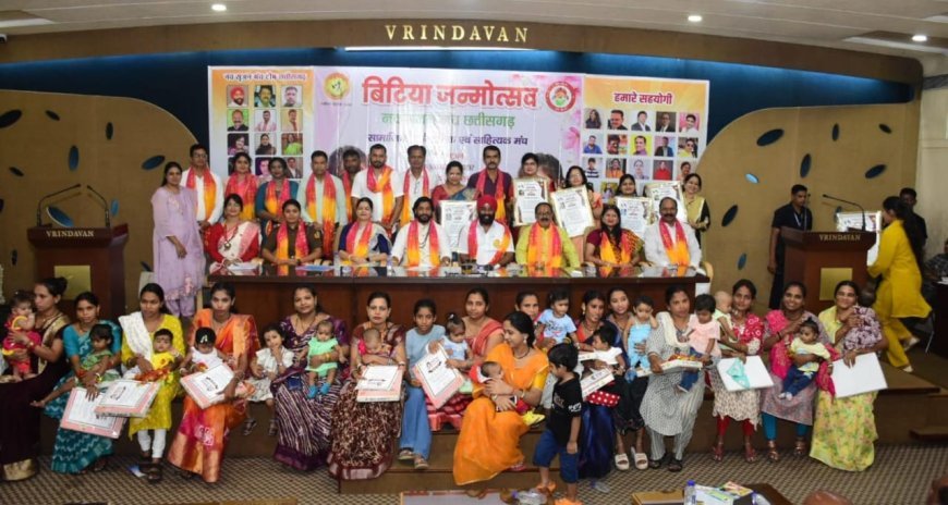 छत्तीसगढ़ की सामाजिक संस्था नवसृजन मंच ने बिटिया जन्मोत्सव के अवसर पर 201 नन्हीं बेटियों के माता-पिता का सम्मान किया। कन्या पूजन और सम्मान समारोह में मंत्री गुरु खुशवंत साहिब और कई गणमान्य अतिथि शामिल हुए। संस्था पिछले 11 वर्षों से बेटियों के जन्म को प्रोत्साहित करने के लिए यह आयोजन कर रही है।