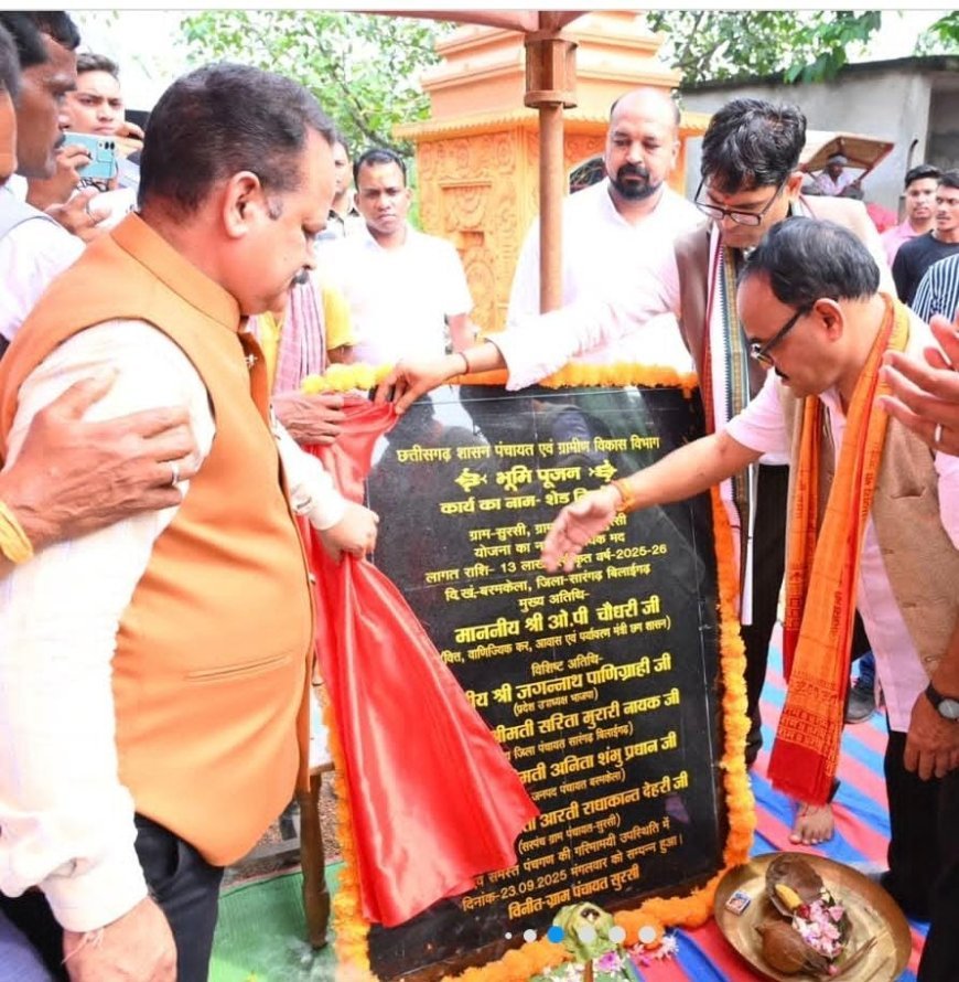 वित्त मंत्री ओ.पी. चौधरी ने बाढ़ प्रभावित सरिया क्षेत्र को दी बड़ी सौगात, राहत भवन और शेड निर्माण का किया भूमिपूजन