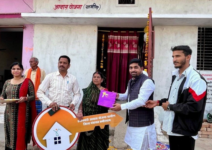 UNITED NEWS OF ASIA. कवर्धा। ग्राम पंचायत धरमपुरा में प्रधानमंत्री आवास योजना के अंतर्गत एक गरिमामय कार्यक्रम का आयोजन किया गया, जिसमें योजना से लाभान्वित हितग्राहियों को उनके नवनिर्मित पक्के आवास की चाबियां सौंपी गईं। जिला पंचायत सभापति डॉ. वीरेन्द्र साहू ने स्वयं हितग्राहियों को चाबियां सौंपते हुए उन्हें नए घर की शुभकामनाएं दीं। इस अवसर पर लाभार्थियों के चेहरों पर अपने पक्के घर का सपना पूरा होने की खुशी स्पष्ट रूप से झलक रही थी।