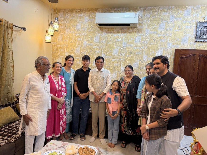 रायपुर एयरपोर्ट पहुंचने के बाद केंद्रीय मंत्री सीधे अमित चिमनानी के निवास पहुंचे, जहां उनका पारंपरिक और आत्मीय स्वागत किया गया। चिमनानी परिवार ने पूरे सम्मान और श्रद्धा के साथ उनका अभिनंदन किया, जिससे कार्यक्रम का माहौल गरिमामय बन गया।