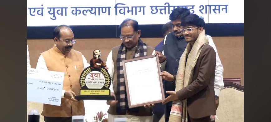 UNITED NEWS OF ASIA. अरुण पुरेना, बेमेतरा। राष्ट्रीय युवा दिवस के अवसर पर राजधानी रायपुर में आयोजित भव्य राज्य स्तरीय समारोह में बेमेतरा जिले के होनहार युवा वैज्ञानिक, शोधकर्ता एवं एस्ट्रोफिजिक्स के क्षेत्र में सबसे कम उम्र के पीएचडी धारक डॉ. पीयूष जायसवाल को छत्तीसगढ़ युवा रत्न सम्मान से सम्मानित किया गया। यह सम्मान उन्हें मुख्यमंत्री विष्णु देव साय एवं उपमुख्यमंत्री अरुण साव के करकमलों से प्रदान किया गया।