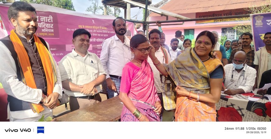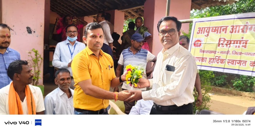 धमतरी के नक्सल प्रभावित ग्राम रिसगाव में “स्वस्थ नारी, सशक्त परिवार” अभियान के तहत 28 सितम्बर 2025 को एक दिवसीय स्वास्थ्य मेला आयोजित किया गया। इसमें गर्भवती, शिशुवती और किशोरी बालिकाओं के साथ सामान्य महिलाओं की जांच की गई। कुल 314 मरीजों ने स्वास्थ्य सेवाओं का लाभ लिया, जिसमें नेत्र, टी.बी., मलेरिया, गैर-संचारी रोग, टीकाकरण, आयुष्मान और व्यय वंदना कार्ड वितरण शामिल था। जिला पंचायत अध्यक्ष और वरिष्ठ अधिकारियों की उपस्थिति ने कार्यक्रम की भव्यता बढ़ाई।