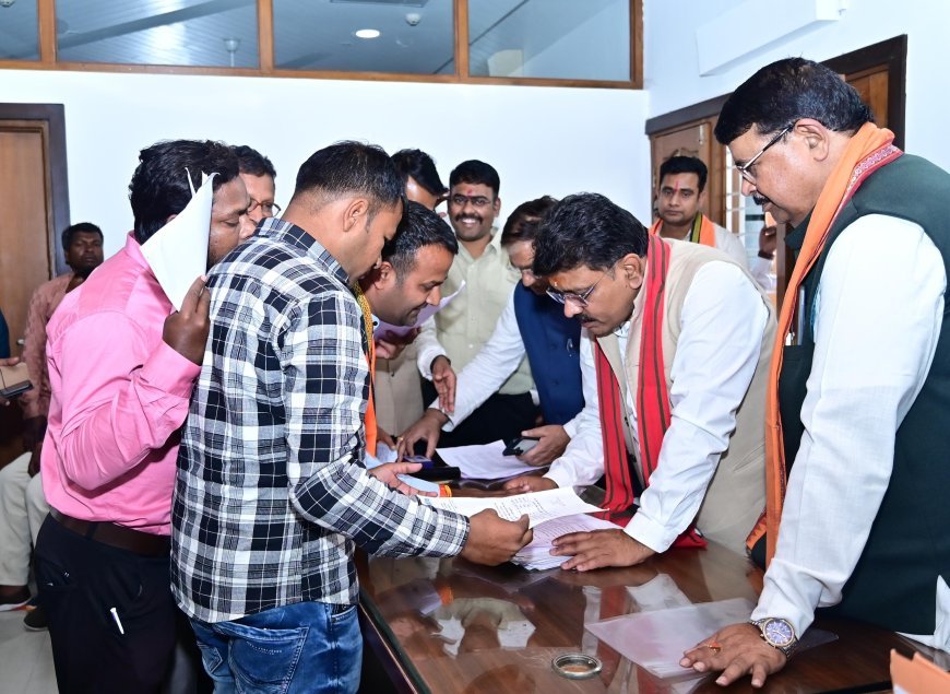 रायपुर स्थित भाजपा प्रदेश कार्यालय के सहयोग केंद्र में आयोजित जनदर्शन कार्यक्रम में उपमुख्यमंत्री विजय शर्मा ने 500 से अधिक कार्यकर्ताओं और आम नागरिकों की समस्याएं सुनीं तथा संबंधित विभागों को त्वरित निराकरण के निर्देश दिए।