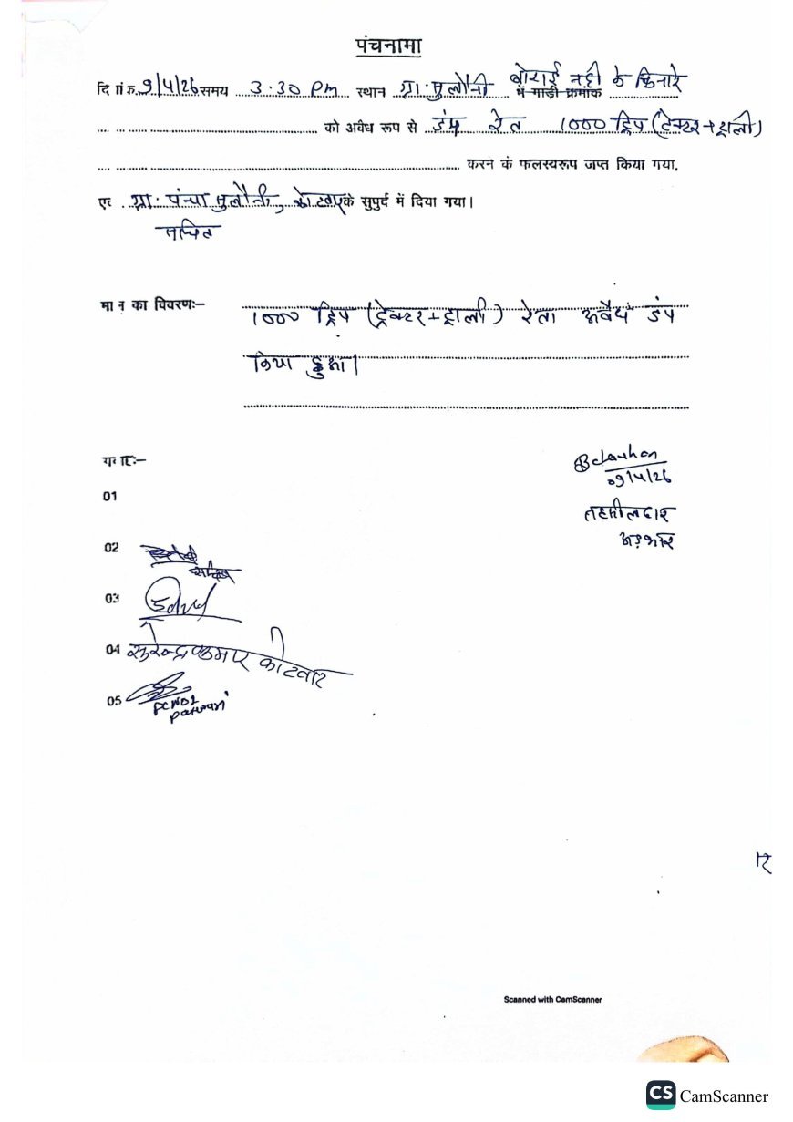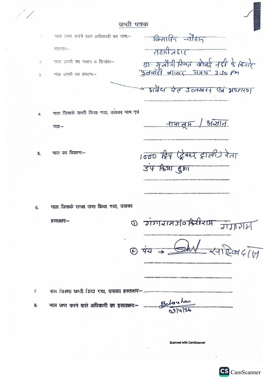 प्रशासन के अनुसार यह रेत बिना अनुमति के अवैध रूप से संग्रहित की गई थी, जो खनिज नियमों का उल्लंघन है। कार्रवाई के दौरान संबंधित व्यक्तियों की पहचान की जा रही है और उनके खिलाफ वैधानिक प्रक्रिया शुरू कर दी गई है।