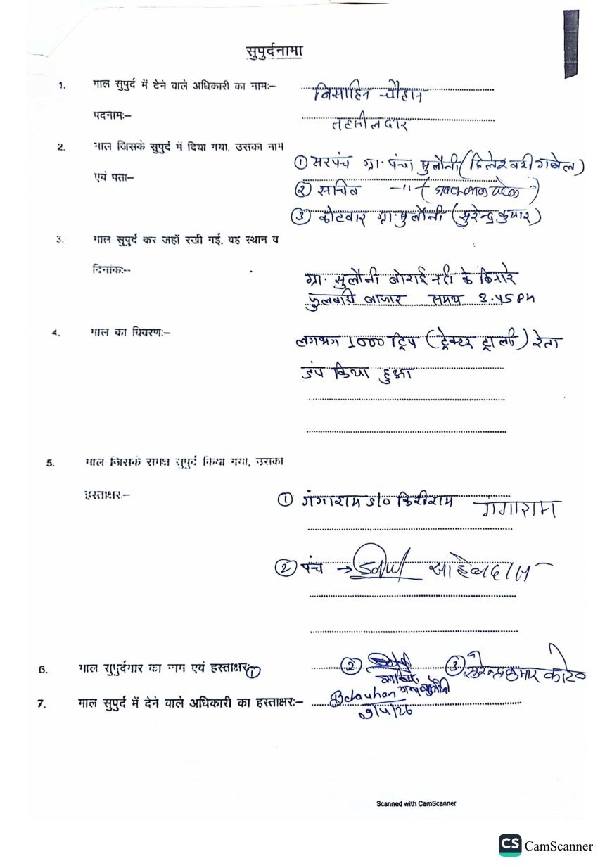 कलेक्टर अमृत विकास तोपनो के निर्देशन में राजस्व विभाग की टीम ने मौके पर पहुंचकर जांच की। जांच के दौरान पाया गया कि बड़ी मात्रा में रेत का अवैध भंडारण किया गया था। टीम ने लगभग 1000 ट्रिप (ट्रैक्टर-ट्रॉली) रेत को जब्त कर लिया, जो अब तक की बड़ी कार्रवाई में से एक मानी जा रही है।
