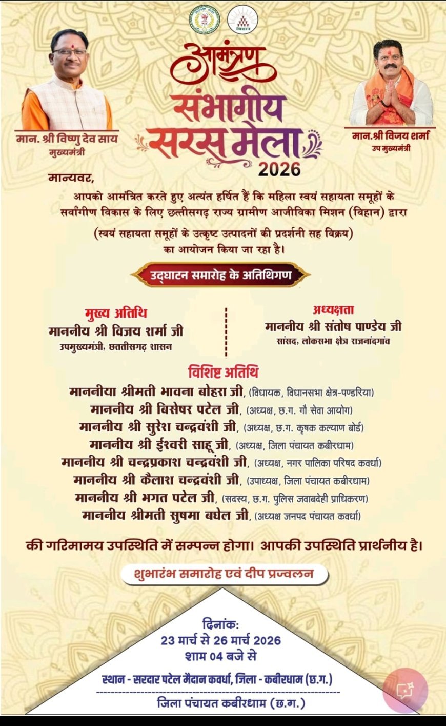 यह आयोजन निश्चित रूप से कवर्धा जिले के लिए एक बड़ा आकर्षण बनने वाला है, जहां विकास, संस्कृति और आत्मनिर्भरता का संगम देखने को मिलेगा।