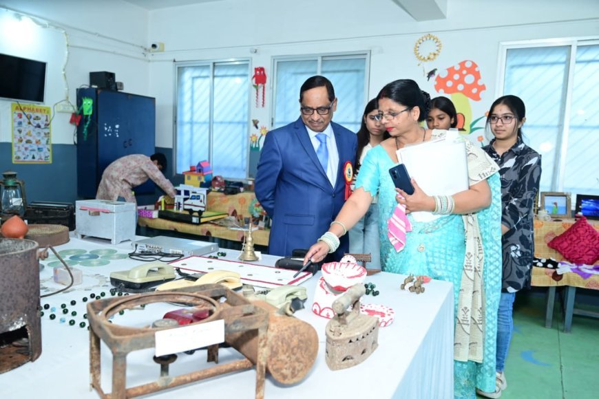 बच्चों ने ‘गांव का दृश्य’ विषय पर रंगीन और जीवंत प्रदर्शनी लगाई, जिसमें ग्रामीण जीवन की सादगी और सौंदर्य दर्शाया गया। प्रदर्शनी में पुरानी वस्तुओं और पुनः उपयोग की गई सामग्री की कला ने दर्शकों का ध्यान आकर्षित किया।