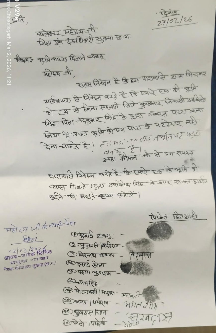 ग्रामीणों का प्रतिनिधिमंडल जब कलेक्ट्रेट में कलेक्टर से मिला, तो उन्होंने पूरे मामले की विस्तृत जानकारी दी और संबंधित दस्तावेज भी प्रस्तुत किए। ग्रामीणों ने बताया कि विवादित भूमि गांव के लिए महत्वपूर्ण है और इससे कई परिवारों की आजीविका भी जुड़ी हुई है, इसलिए इस मामले का शीघ्र निराकरण बेहद जरूरी है।