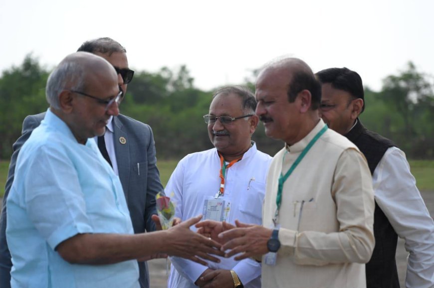 हेलीपैड पर उतरते ही उपराष्ट्रपति महोदय का पुष्पगुच्छ भेंट कर स्वागत किया गया। जिले के संभाग आयुक्त, कलेक्टर, पुलिस अधीक्षक, जनप्रतिनिधि एवं वरिष्ठ अधिकारीगण इस अवसर पर उपस्थित रहे। पूरा परिसर भव्य सजावट से सुसज्जित किया गया था, जहाँ सुरक्षा और स्वागत दोनों की उच्चतम व्यवस्था की गई थी।